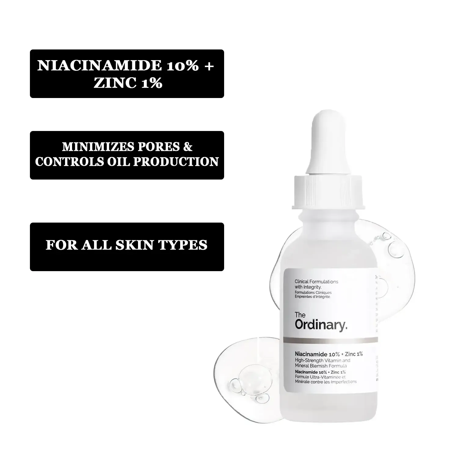 The Ordinary Niacinamide 10% + Zinc 1% is a lightweight, water-based serum formulated to visibly clarify, smooth, and brighten your complexion. Powered by a high concentration of Niacinamide (Vitamin B3) and Zinc PCA, it helps regulate excess oil, reduce blemishes, and refine pores—promoting clear, balanced, and radiant skin every day.